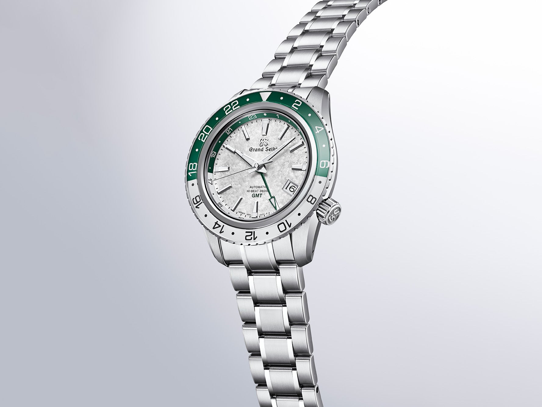 Imagine a valley where the highest peaks are capped with snow, even in summer. Such a snowy valley enchants the hearts of those who happen to glimpse its rare scenery. In the SBGJ277, the green of the rotating bezel contrasts with the pure white of the finely molded dial pattern, evoking this special mountain scene. One characteristic of this model is its prominent rotating bezel, which imparts a sporty character and allows wearers the ability to check the time in up to three different time zones. The watch houses the mechanical Hi-Beat 36000 GMT Caliber 9S86, which runs at ten beats per second while offering excellent rate stability and resistance to outside interference.