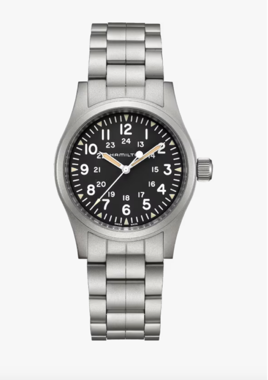The original soldier’s watch is sportier than ever with a comfortable stainless steel bracelet. Powered by our exclusive H-50 handwinding movement, our latest Khaki Field Mechanical style won’t let you down. Rugged and reliable, this 38mm field watch is ready for an adventure.