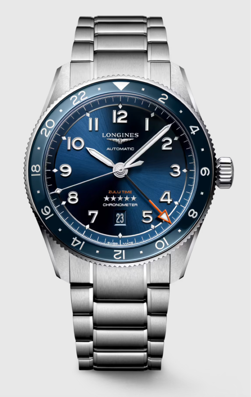 The LONGINES Spirit Zulu Time typifies the brand’s century-old expertise in timepieces with multiple time zones. Its origins and its name come from the first LONGINES dual time zone wristwatch manufactured in 1925, which featured the Zulu flag on its dial – Zulu referring to the letter “Z” that designates universal time for aviators. Aesthetically, the LONGINES Spirit Zulu Time stands out with its meticulous execution and the particular care given to the various details. It features a bidirectional rotating bezel with a ceramic insert. Each model is powered by an exclusive LONGINES calibre, equipped with a silicon balance-spring, resistant to magnetic fields and chronometer-certified by the COSC.