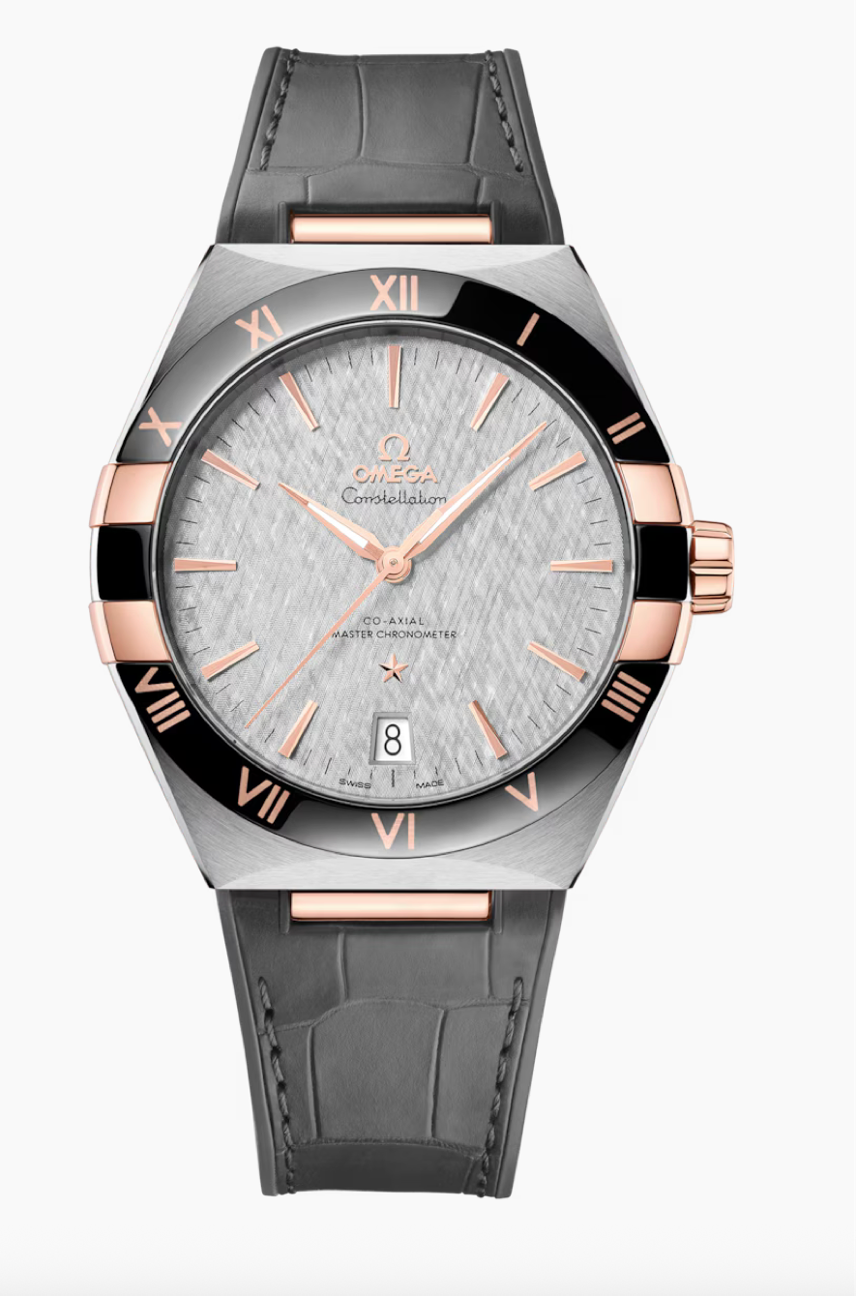 Omega Constellation 41 MM Steel - Sedna™ Gold On Leather Strap Rhodium-Grey Dial Watch 131.23.41.21.06.001