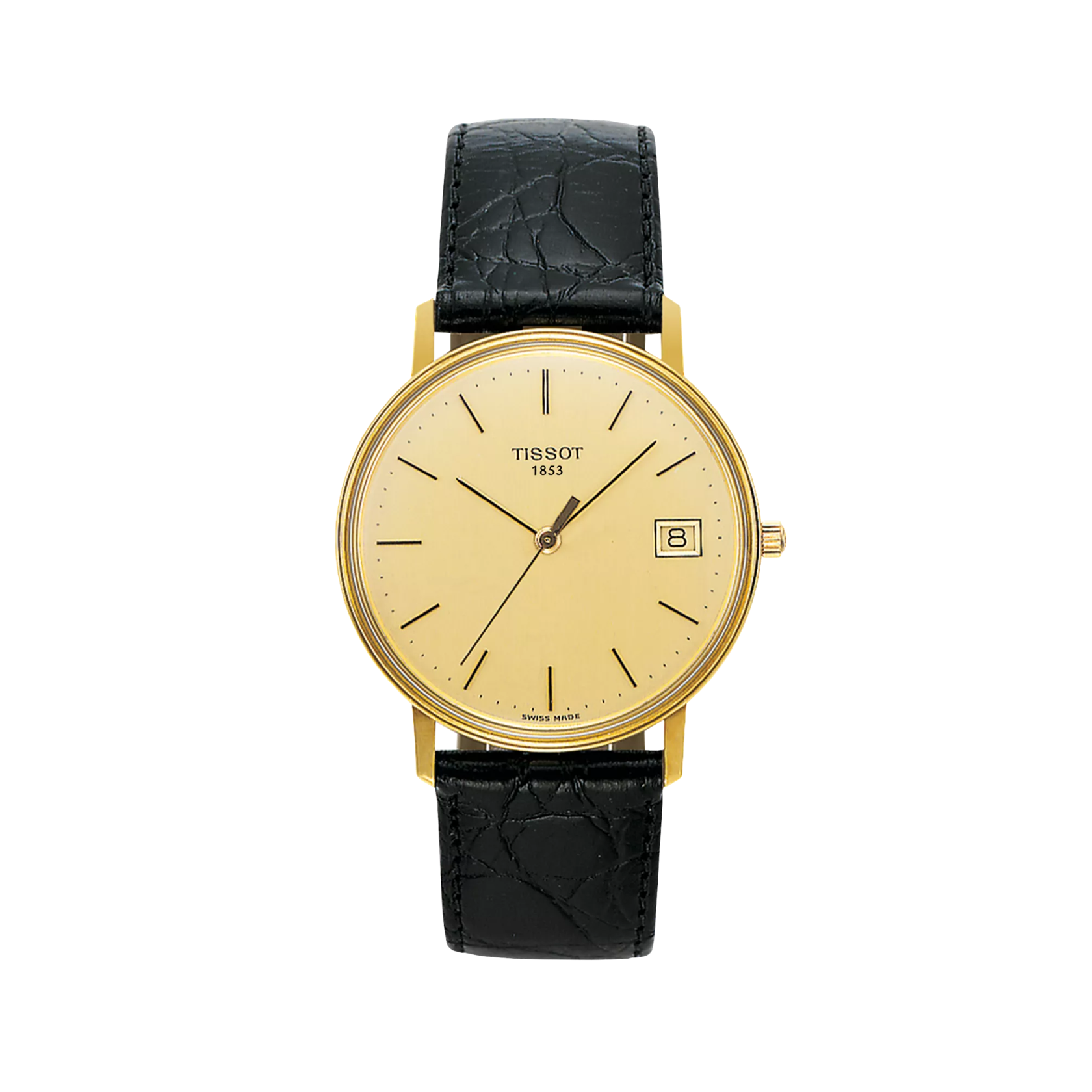 The Tissot Goldrun is a classic watch in all its simplicity conveying elegance and style with an 18ct case and leather strap this watch can be treasured and kept for generations or purchased to represent a significant occasion.