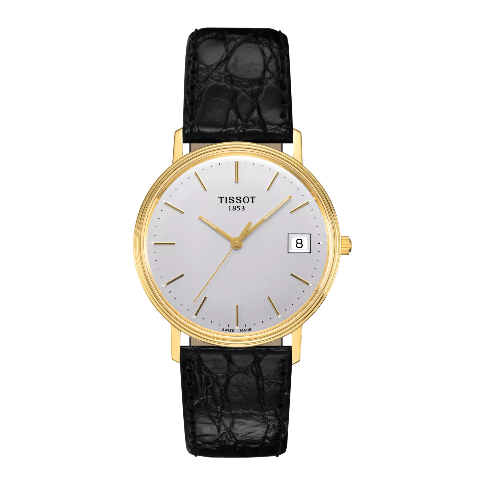 The Tissot Goldrun is a classic watch in all its simplicity conveying elegance and style with an 18ct case and leather strap this watch can be treasured and kept for generations or purchased to represent a significant occasion.